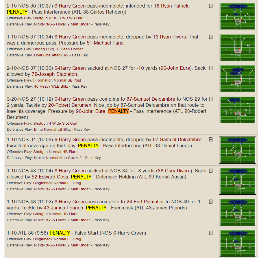 vcr5150 wrote: Not a specific play - but this preseason game caught my attention: 10 penalties for 84 yards resulting in 7 first downs by penalty. https://mfn6.myfootballnow.com/box/10993 Ha ha wth? We used to get those blanket penalty plays a lot in early MFN games but I've now seen quite a few lately. I have to say (and I think I'm in the minority here) the game play seems to have changed a little bit recently |